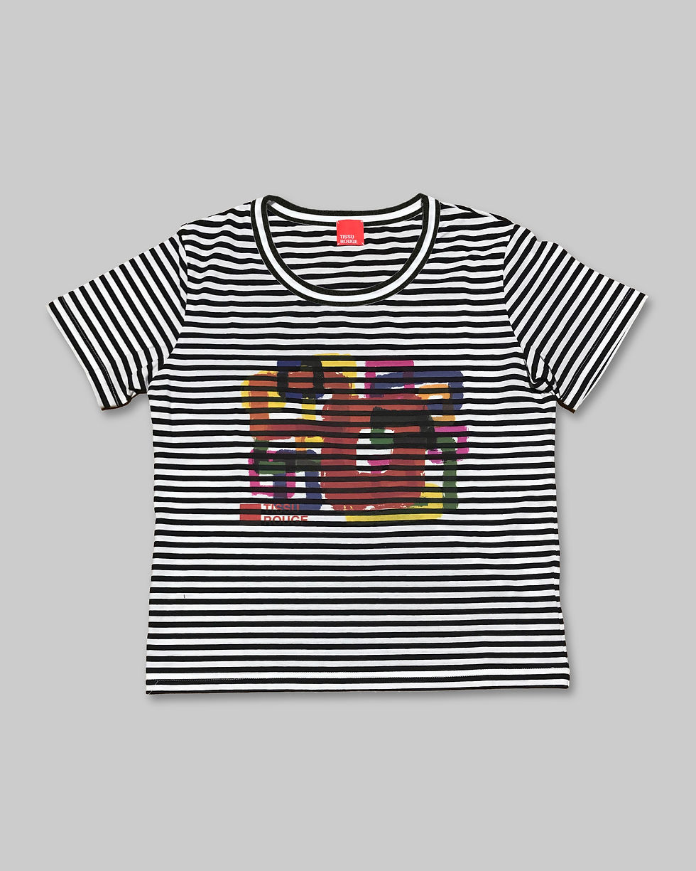手描きのスクエア柄をプリントしたポップなTシャツです。